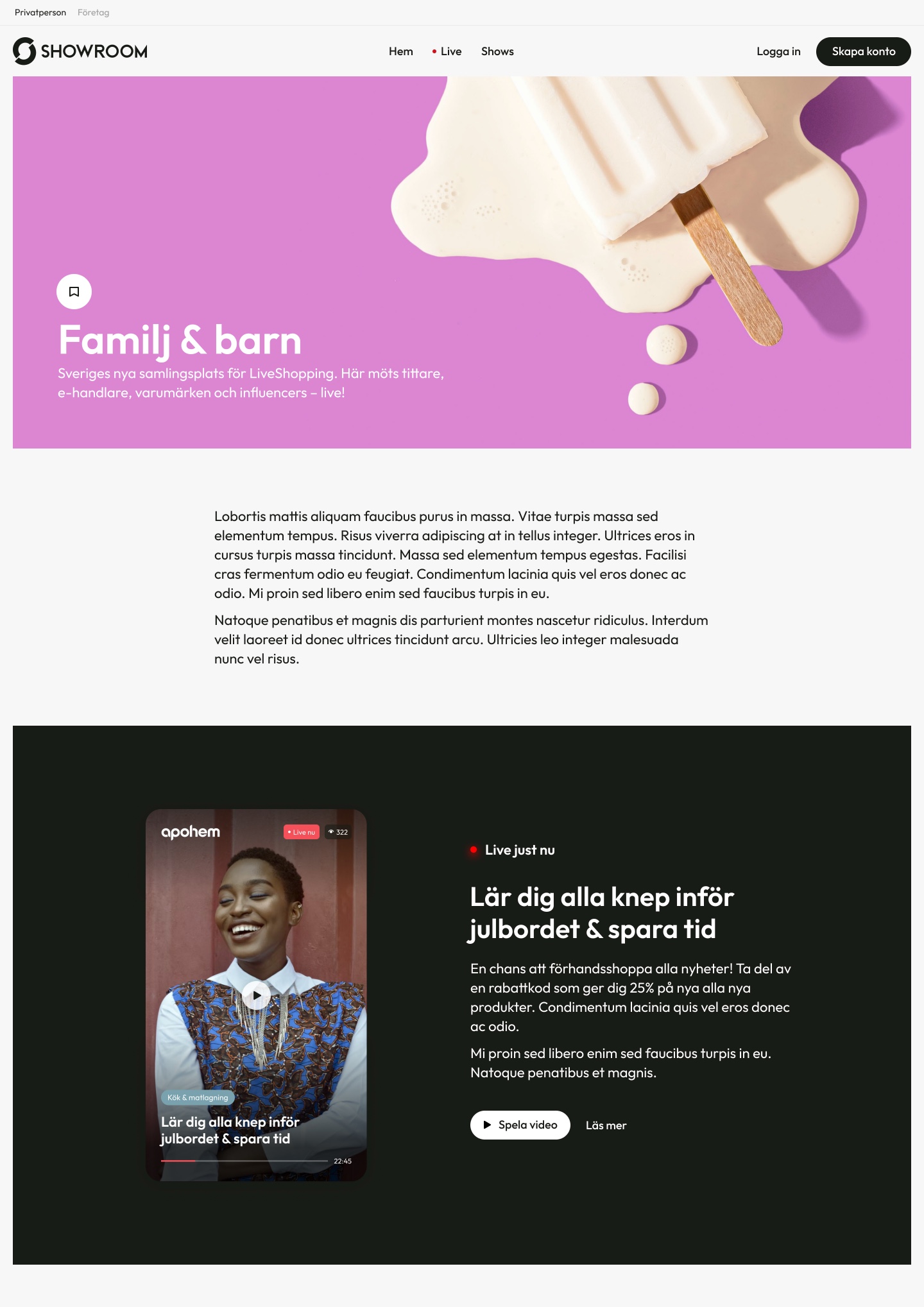 Showroom was an ambitious initiative within live shopping and social commerce, aiming to make e-commerce more human, engaging and inspiring. The challenge was to build a completely new format that both consumers and brands could easily understand and adopt, while ensuring a seamless experience across both live and recorded content, with mobile as the primary channel.